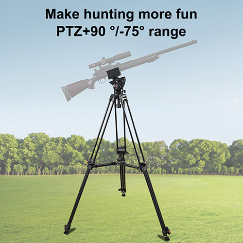 Aluminiozko tripodea, marko iraunkorra, arina, hankak erregulagarriak, ehizarako, tiroetarako eta kanpoko esku libreko funtzionamendurako egokia.