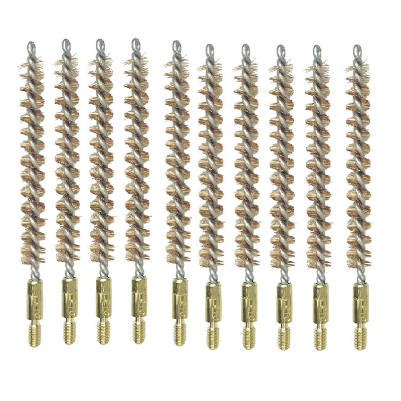 Brontzezko hariak Pistola garbitzeko eskuilak zuloak garbitzeko ● Erresistentzia handiko letoizko hariak. Herdoilaren aurkako altzairuzko zurtoina. ● Eskuila-diametro bakoitza dagokion zuloaren barne-diametroa baino 0,5-2 mm handiagoa izango da, zuladura ondo garbitu ahal izateko. ● Eskuila bakoitzak bere kalibre-zenbakia eskuila gainean inprimatuta ez garbi. ● Intxaurra eskuilaren zurtoinaren gainean estu eta sendo sakatzen da. ● OEM eta bezeroaren logotipoa onartzen da.