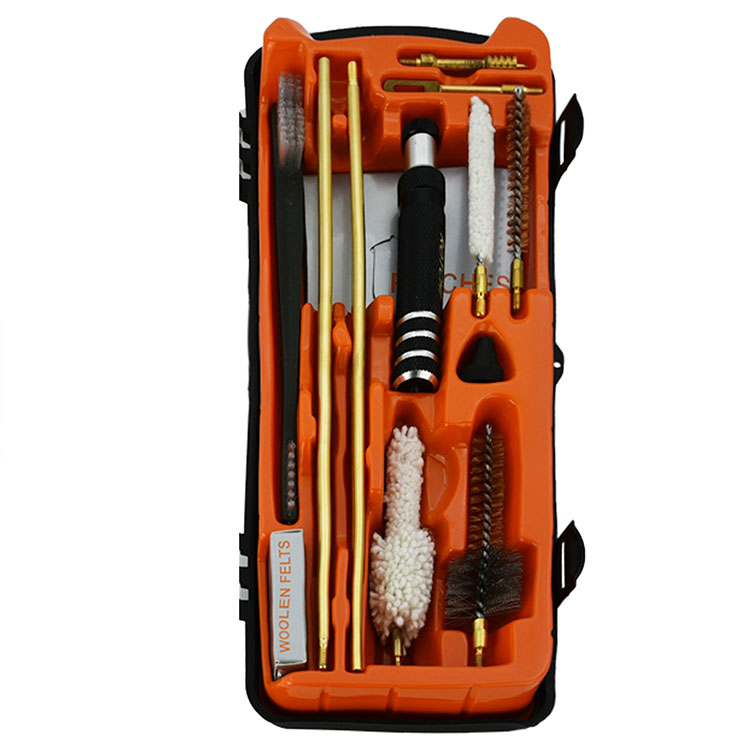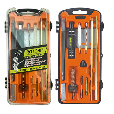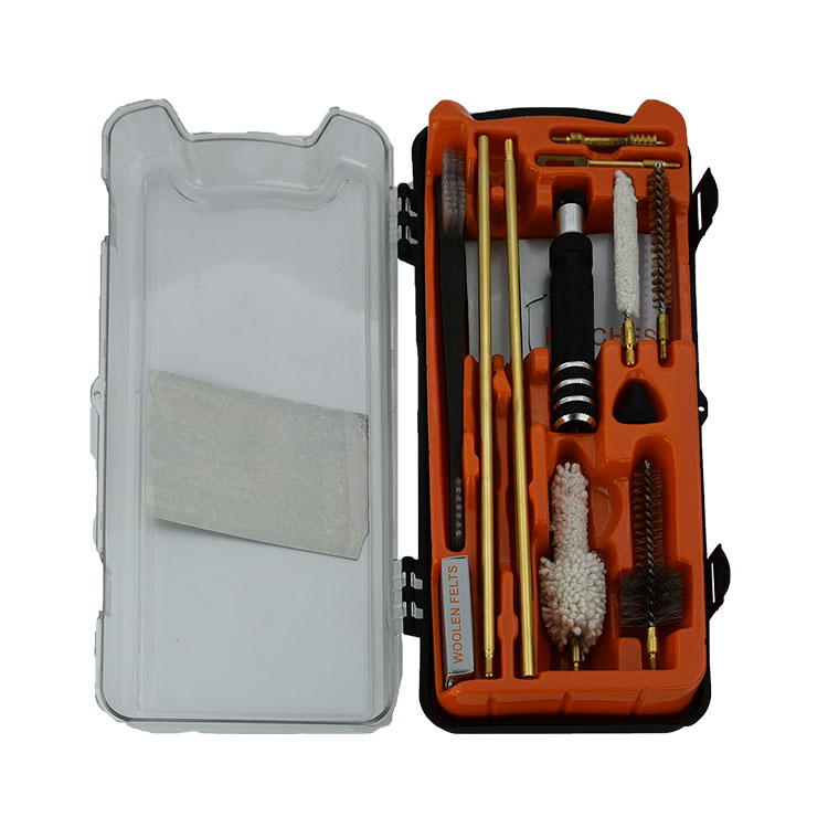 Pistola garbitzeko kit- Fusil kit (.22,.25,.27,.30,.338) Pistola garbitzeko kit trinkoek garbiketa-tresna profesional osoa eskaintzen dizute pistola kalibre desberdinak asetzeko. Blister erretiluak aldizka biltzen laguntzen dizu.