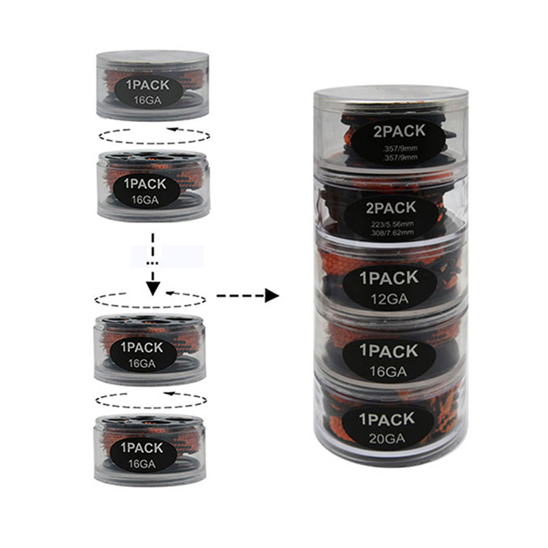 Pistola garbitzeko zuloa soka sugea geruza anitzeko paketea.DIY.Kalibreak eta kantitateen konbinazioa Pistola Garbiketa Bore Snake Ropes Geruza anitzeko konbinazioa, geruza anitzeko zilindro hau hainbat kalibretako pistola garbitzeko sugez osatuta dago. Biltegiratzeko eta biltzeko erosoa da. Barruko nukleoa soka bihurritzeko nukleo gisa ez ezik, tiratzeko helduleku gisa ere erabil daiteke. Horrelako pakete zilindriko bat pakete bakarra baino errazagoa da aurkitzea. Diseinua Rotchi-k patentatua da.