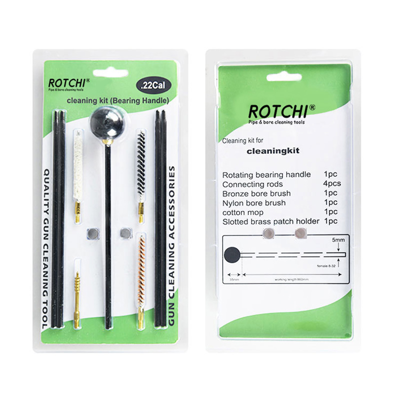 Fusil eta airgunentzako pistolak garbitzeko kit profesionala. Errodamendudun bola-heldulekuak eskuila librean biratzen diren zuloetan garbitzeaz gain, eskuan eskuan erosoa ere eskaintzen dizu. Precision mekanizatutako hagaxkak luzeak, zuzenak eta leunak dira, konexioetan urratsik gabe.