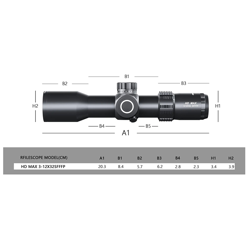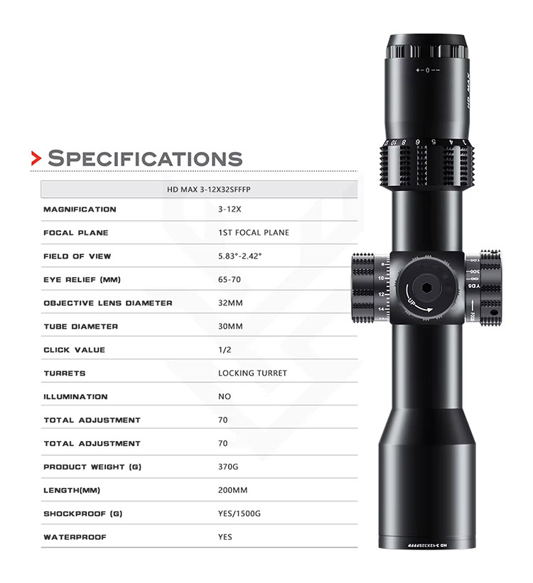 MAX 3-12X32SF FFP HD lente handiko ehiza teleskopio monokularra handizkakoa