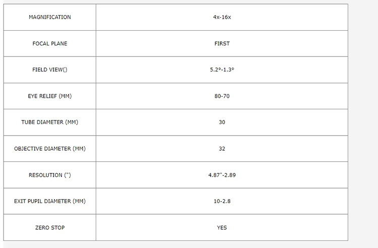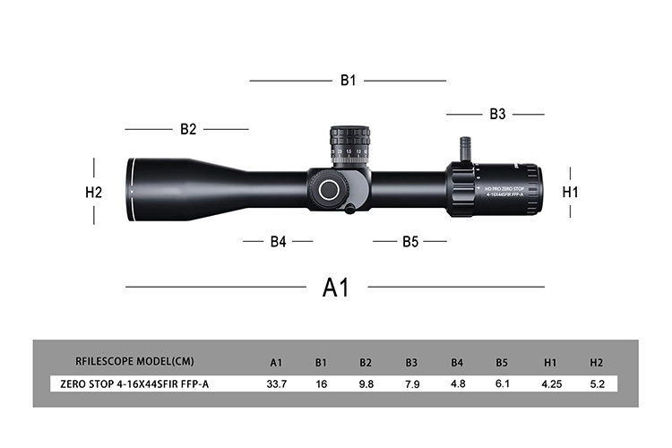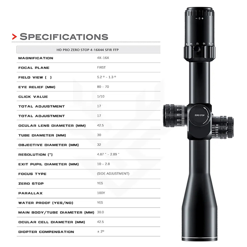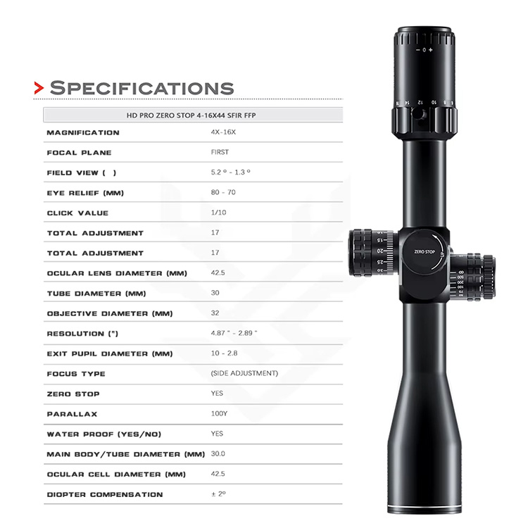 Optika HD PRO ZERO STOP 4-16x44 SFIR FFP Shock Erresistentzia Handiko Ehiza