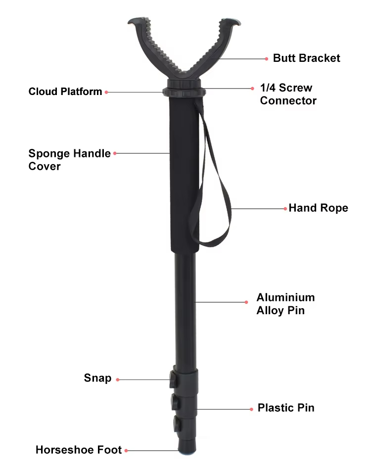 Pertsonalizazio pertsonalizatua V formako uztarri birakaria/aluminio aleaziozko tripodearen euskarria Ehiza tiro egiteko makila