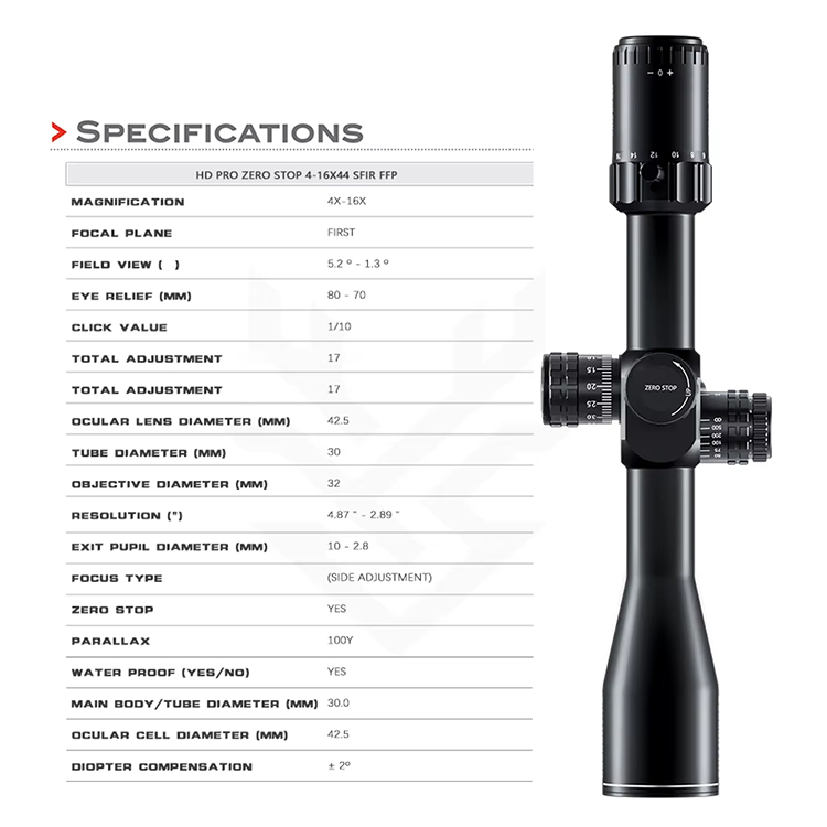 ZERO STOP 4-16X44 SFIR FFP-A 30MM-ko diametroa HD Argi-transmisioa Zero Stop Ehiza-esparrua Ffp